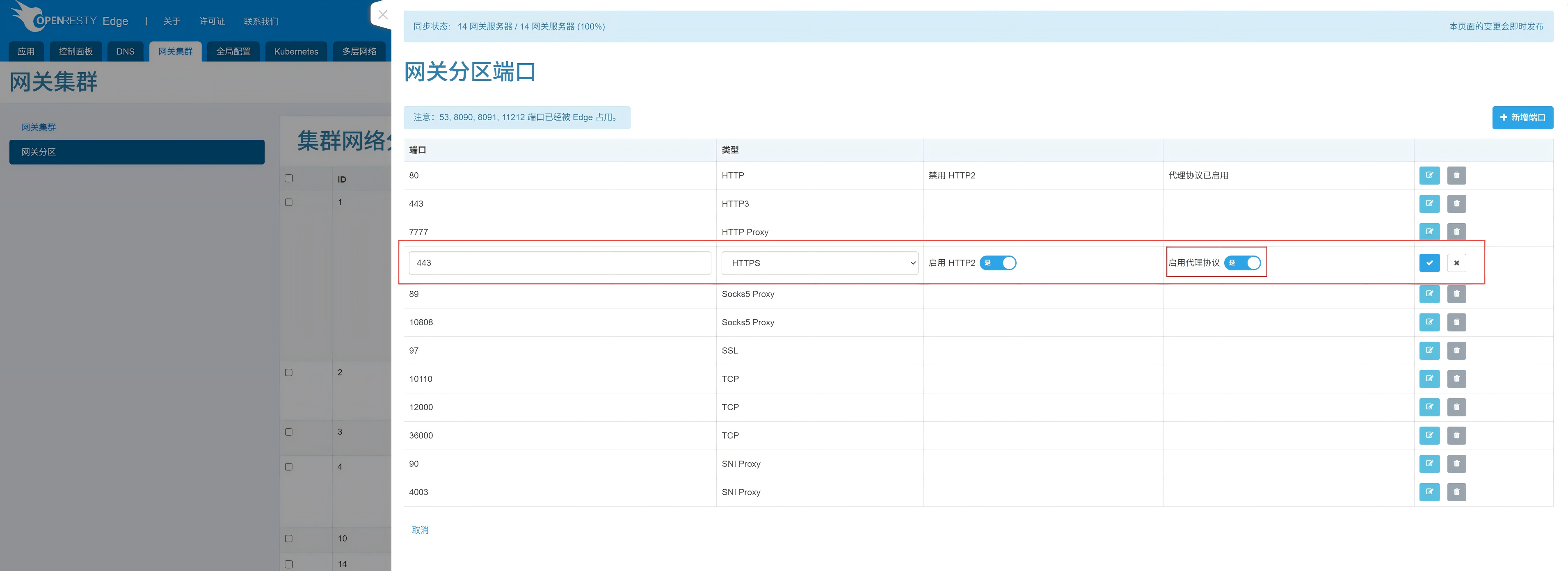 在端口编辑页面中,启用 proxy protocol 并保存配置