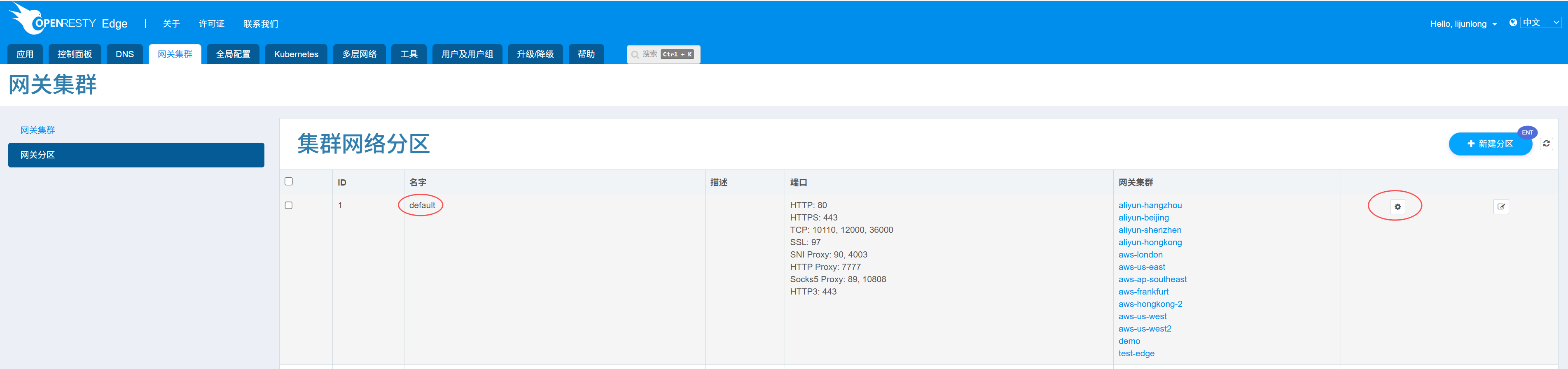 选择需要编辑的网关分区,单击右边的编辑按钮