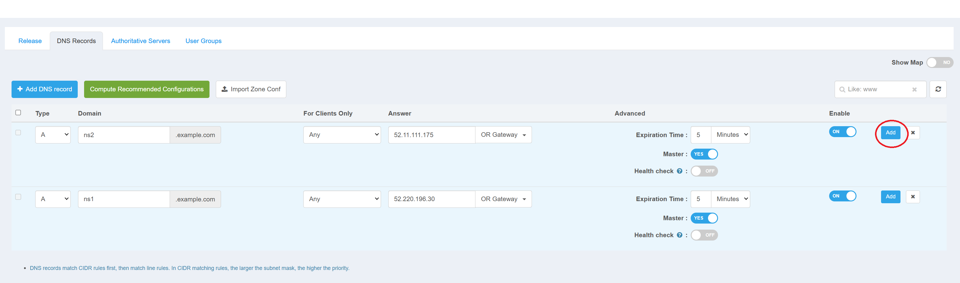 如果希望使用 OpenResty Edge 閘道器來實現權威伺服器,需要將權威伺服器地址指向閘道器節點。